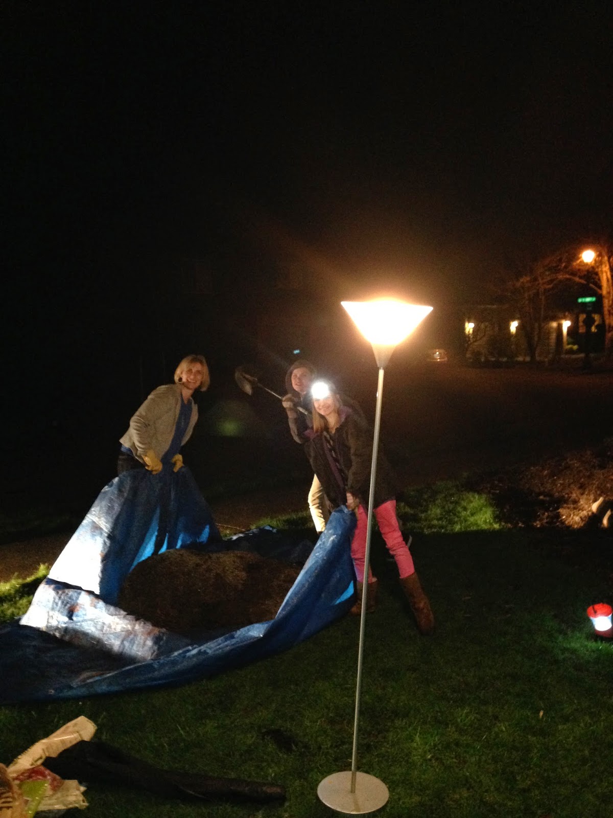 I’m super jazzed about this idea–so jazzed that I made my two flower beds MYSELF! Yep, that’s right! It went swimmingly but when it came time to mix the secret soil together I started right before dusk which explains why Parker, Kennedy and I were mixing and hauling dirt in the front yard at dark with our main illumination being the headlights of the car. It seriously looked like we were burying dead bodies. We are kind of ghetto over here. We especially looked ghetto with head lamps strapped to our foreheads…